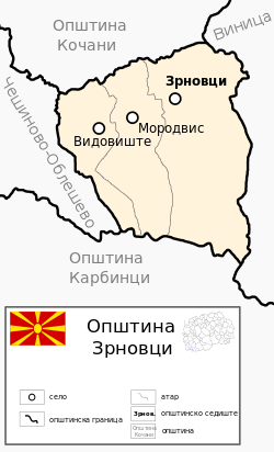 Општина Зрновци има вкупно 3 населени места (Зрновци, Мородвис и Видовиште), население од 2.086 жители и има вкупна површина од 51.764.076 метри квадратни. Актуелен градоначалник на Општина Зрновци е Ванчо Митев.